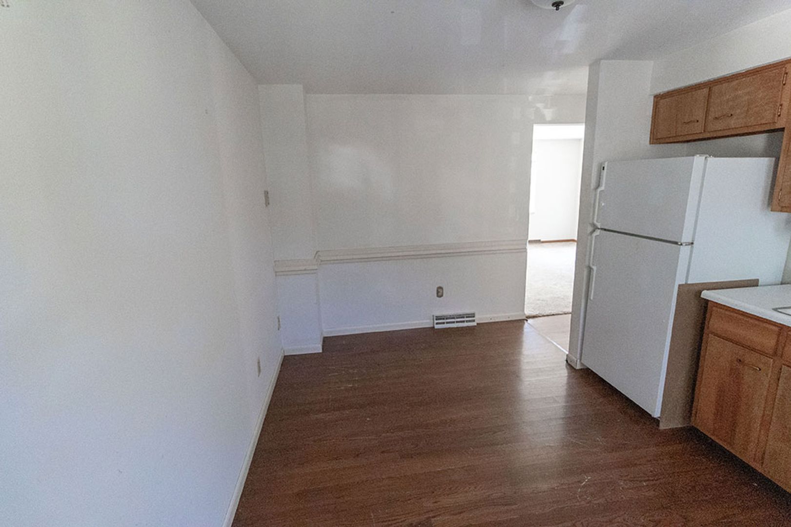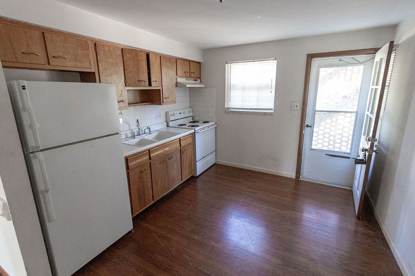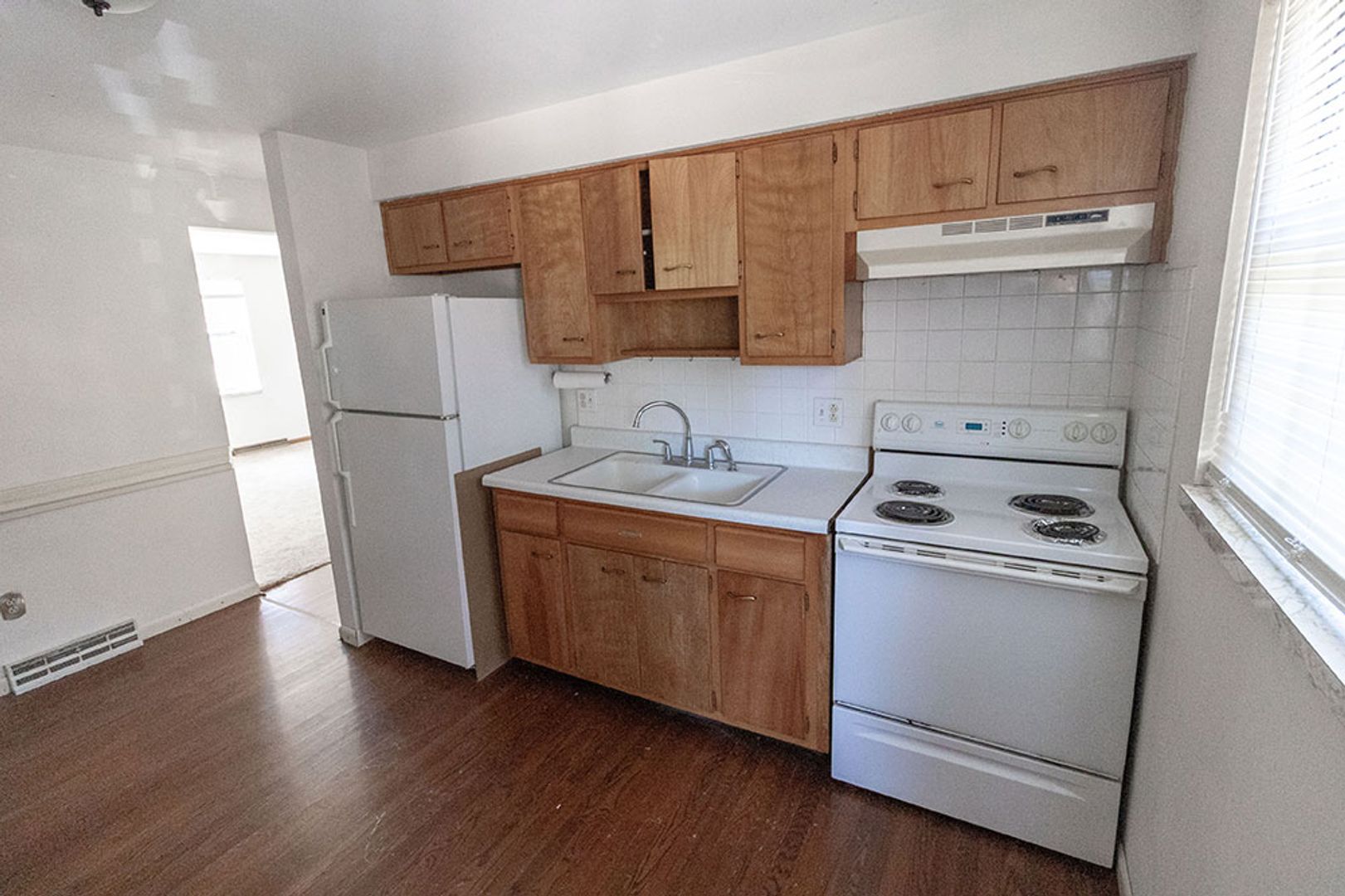 Main Level unit. Large carpet living room and tile floor in the bathroom. The rest of the unit has wood laminate flooring. Large eat in kitchen has access to back deck that walks down to parking area. Call for more information and schedule a showing today! $40 application fee per adult, schedule a showing before applying online. Will not hold unit vacant for any approved applicant past a reasonable amount of time beyond availability date.