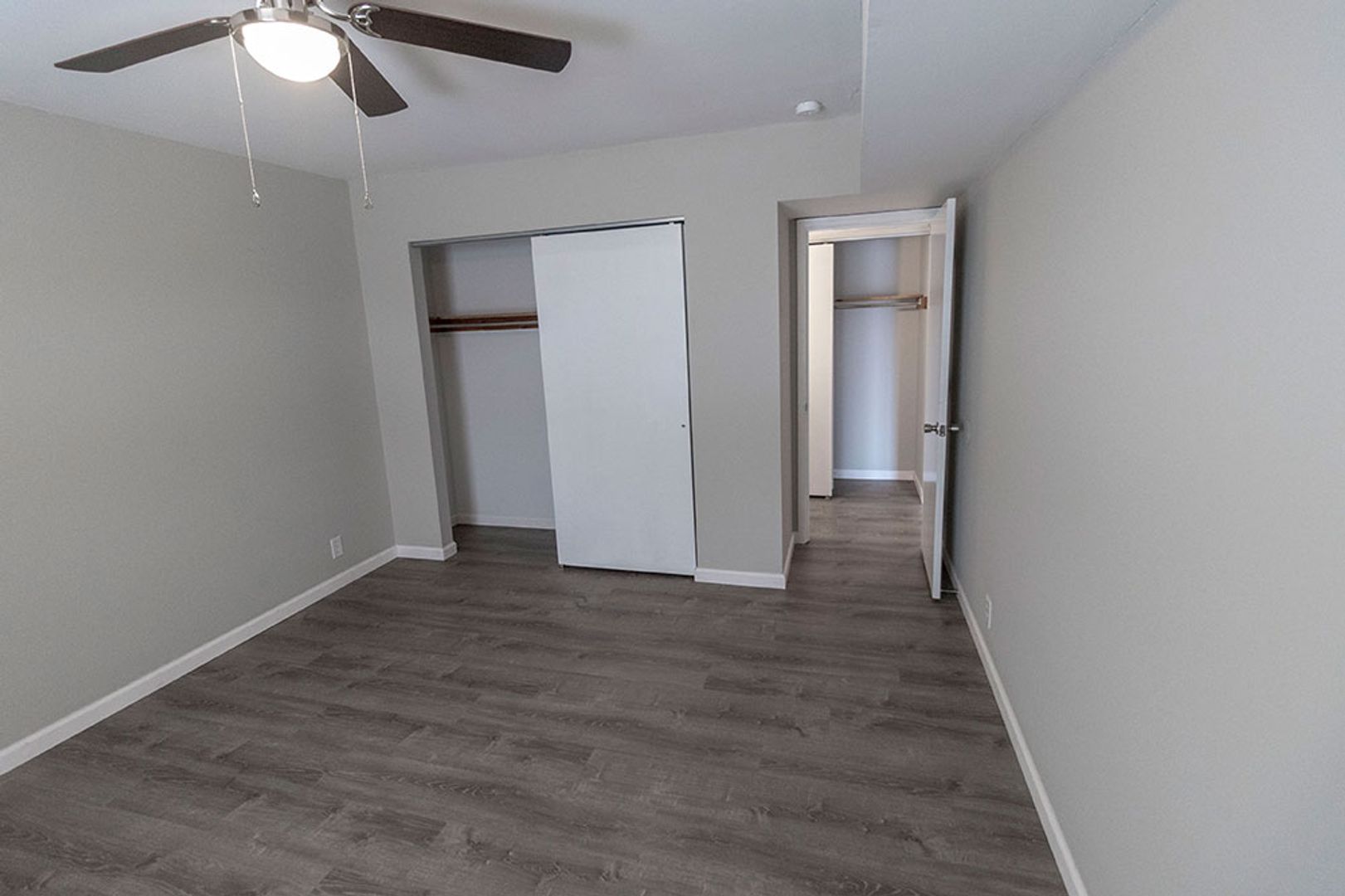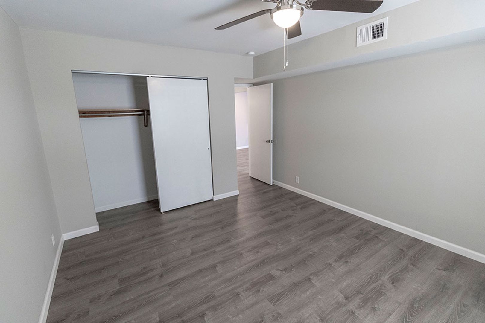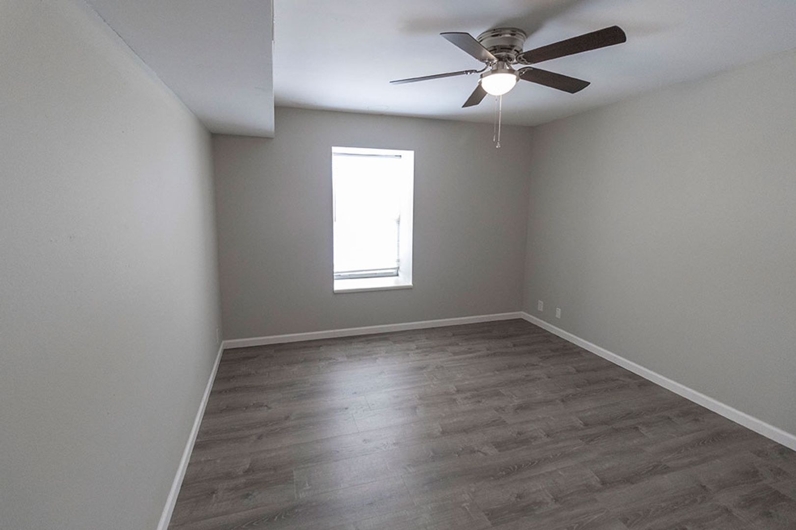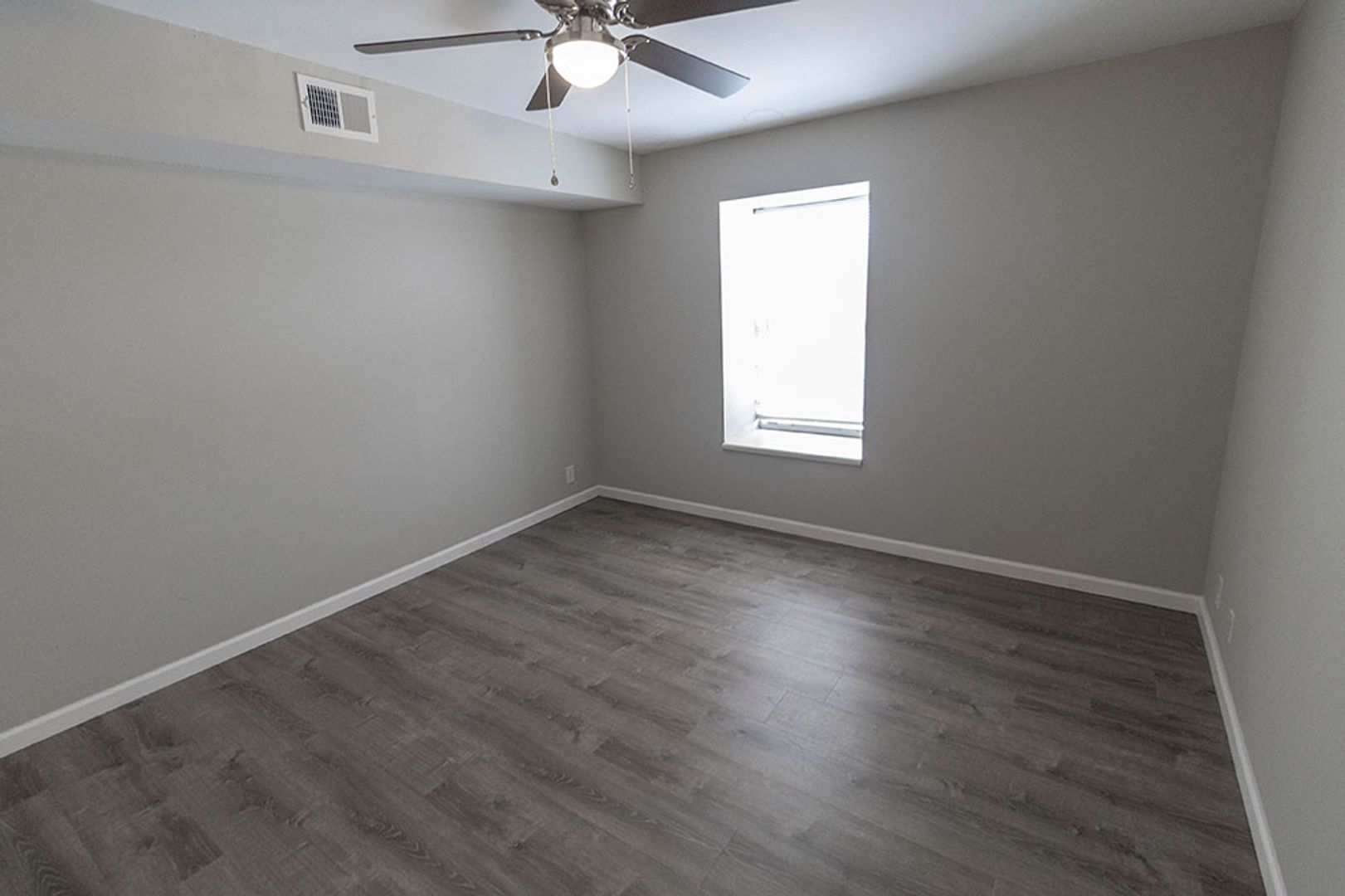 Fully remodeled one-bedroom apartment featuring vinyl plank flooring, new cabinets, and sleek stainless steel appliances. The home includes a separate storage area perfect for a pantry, plus a spacious bedroom equipped with a ceiling fan. The living room offers plenty of space for relaxing or entertaining, and on site parking is available. On-site washer and dryer provide added convenience, and the central location is within walking distance to multiple shopping centers.