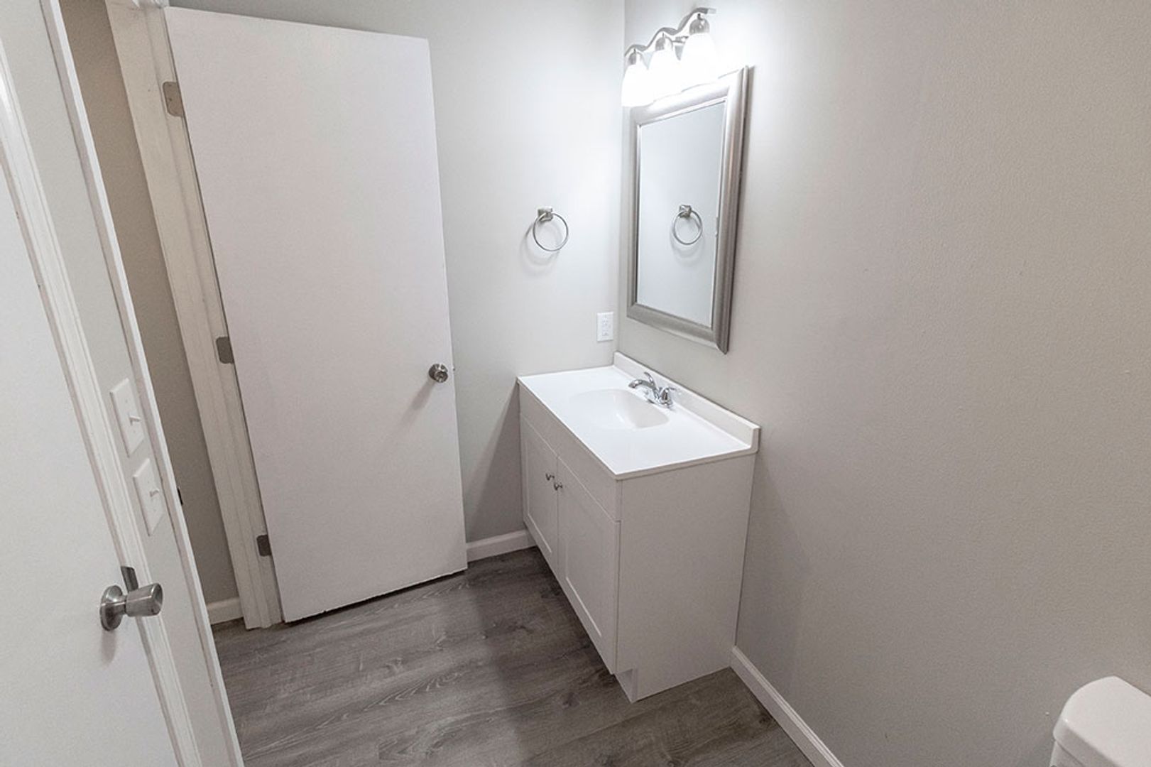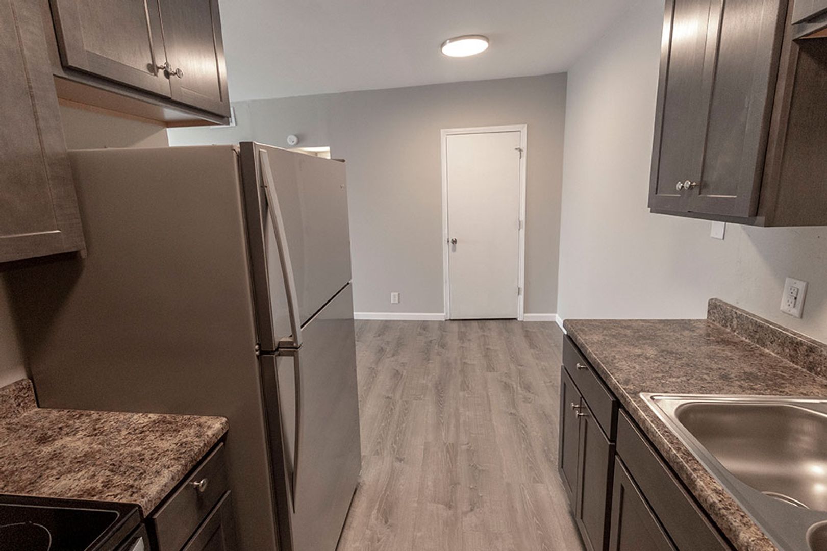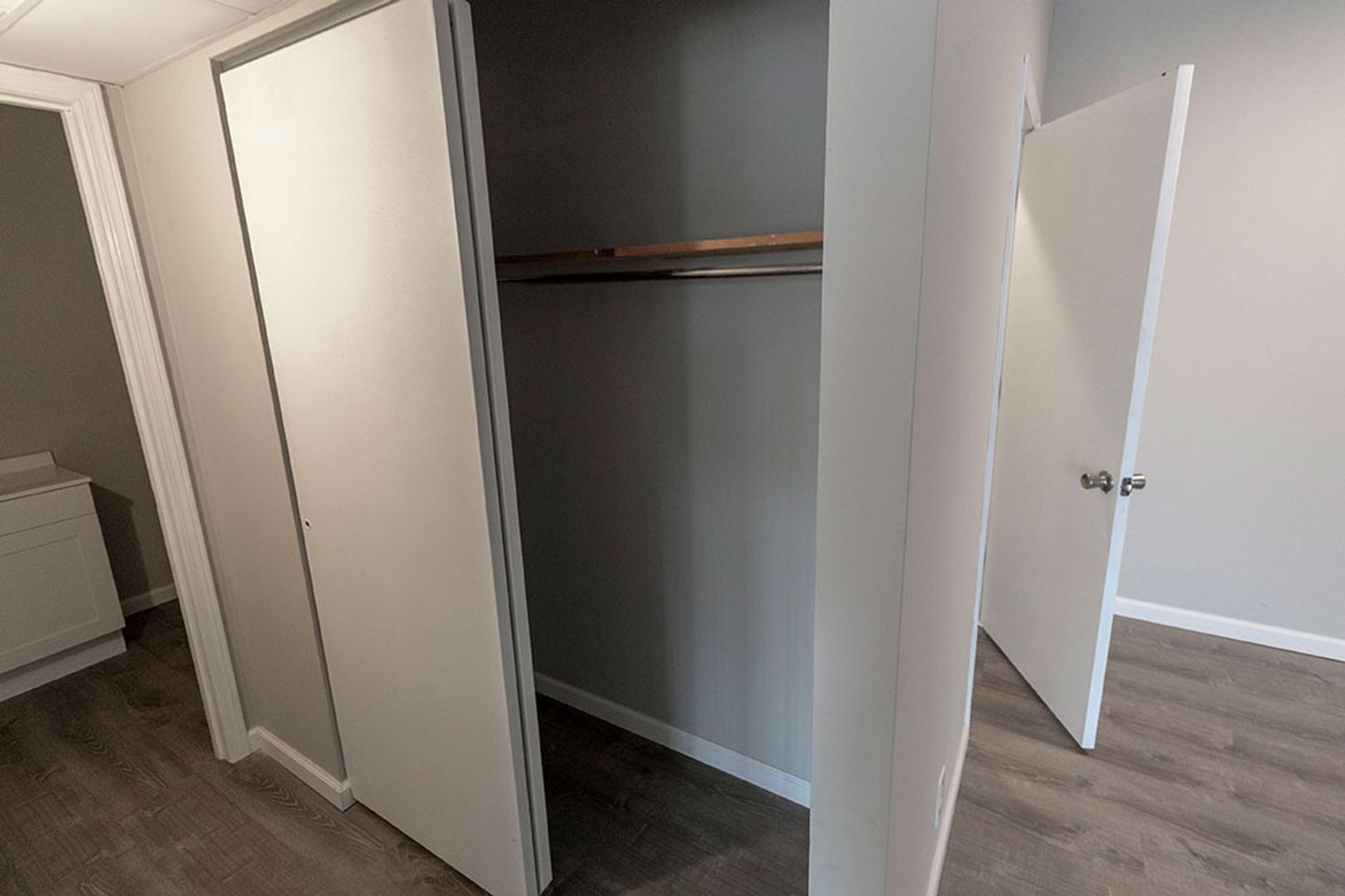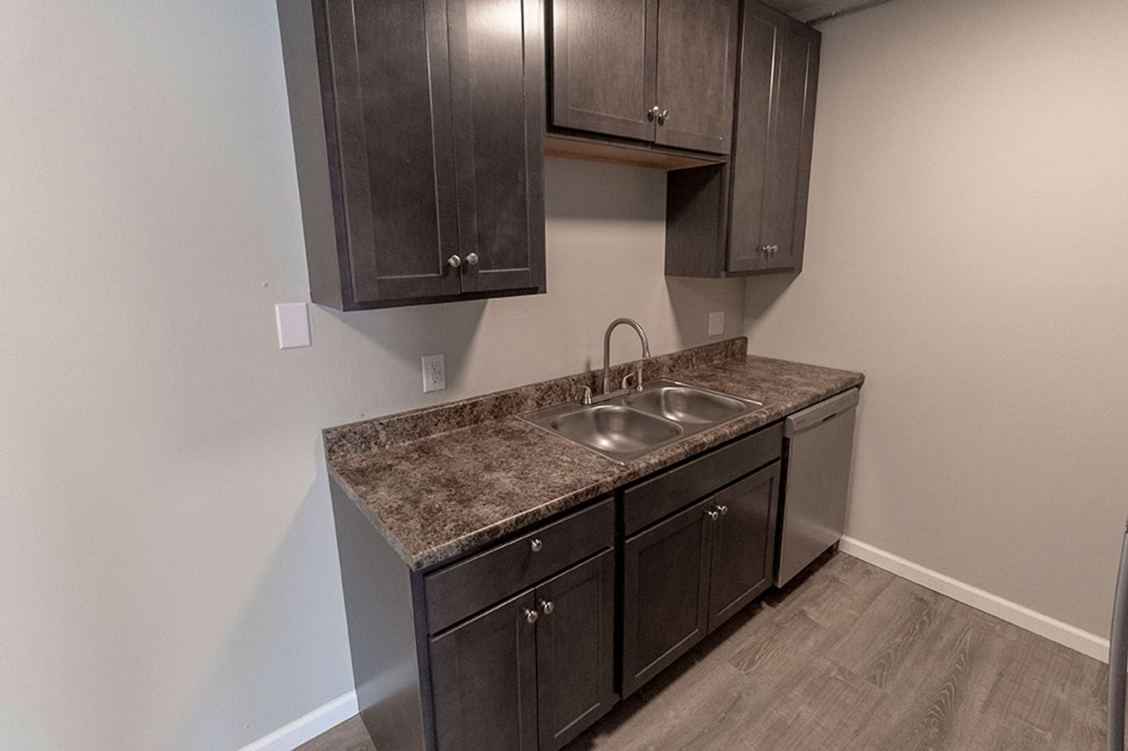 Fully remodeled one-bedroom apartment featuring vinyl plank flooring, new cabinets, and sleek stainless steel appliances. The home includes a separate storage area perfect for a pantry, plus a spacious bedroom equipped with a ceiling fan. The living room offers plenty of space for relaxing or entertaining, and on site parking is available. On-site washer and dryer provide added convenience, and the central location is within walking distance to multiple shopping centers.