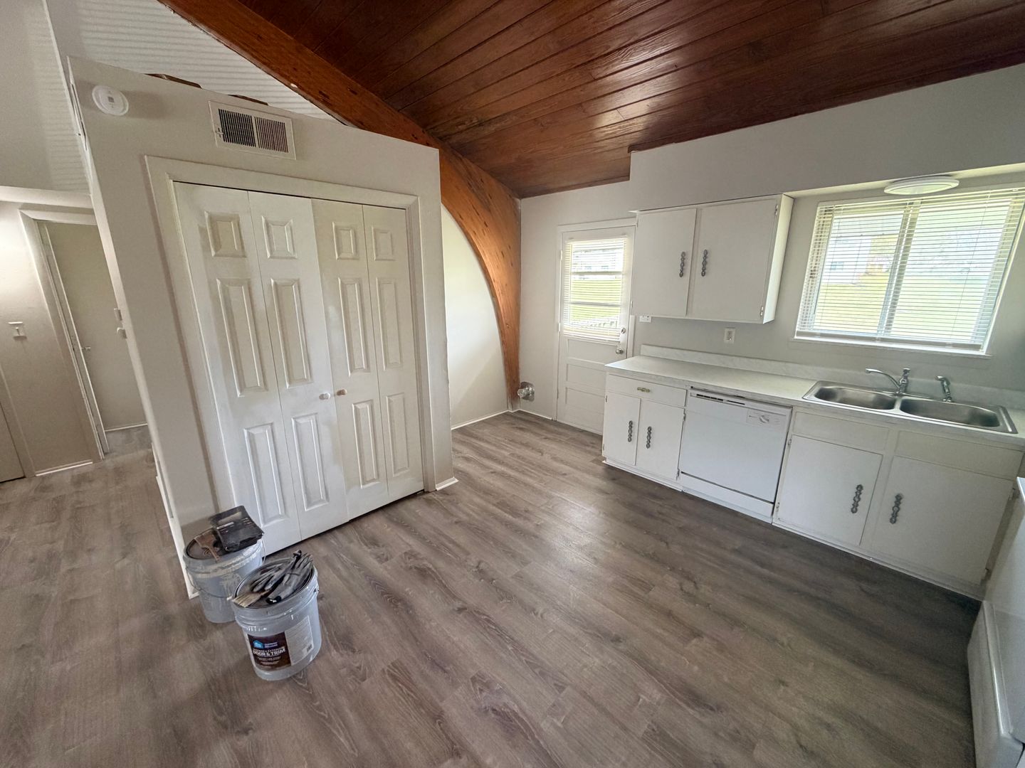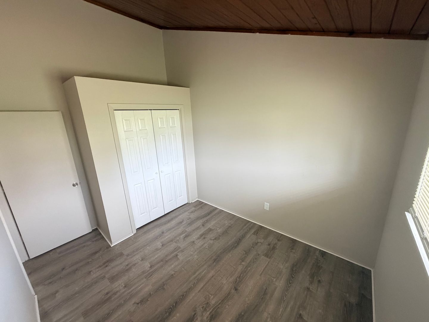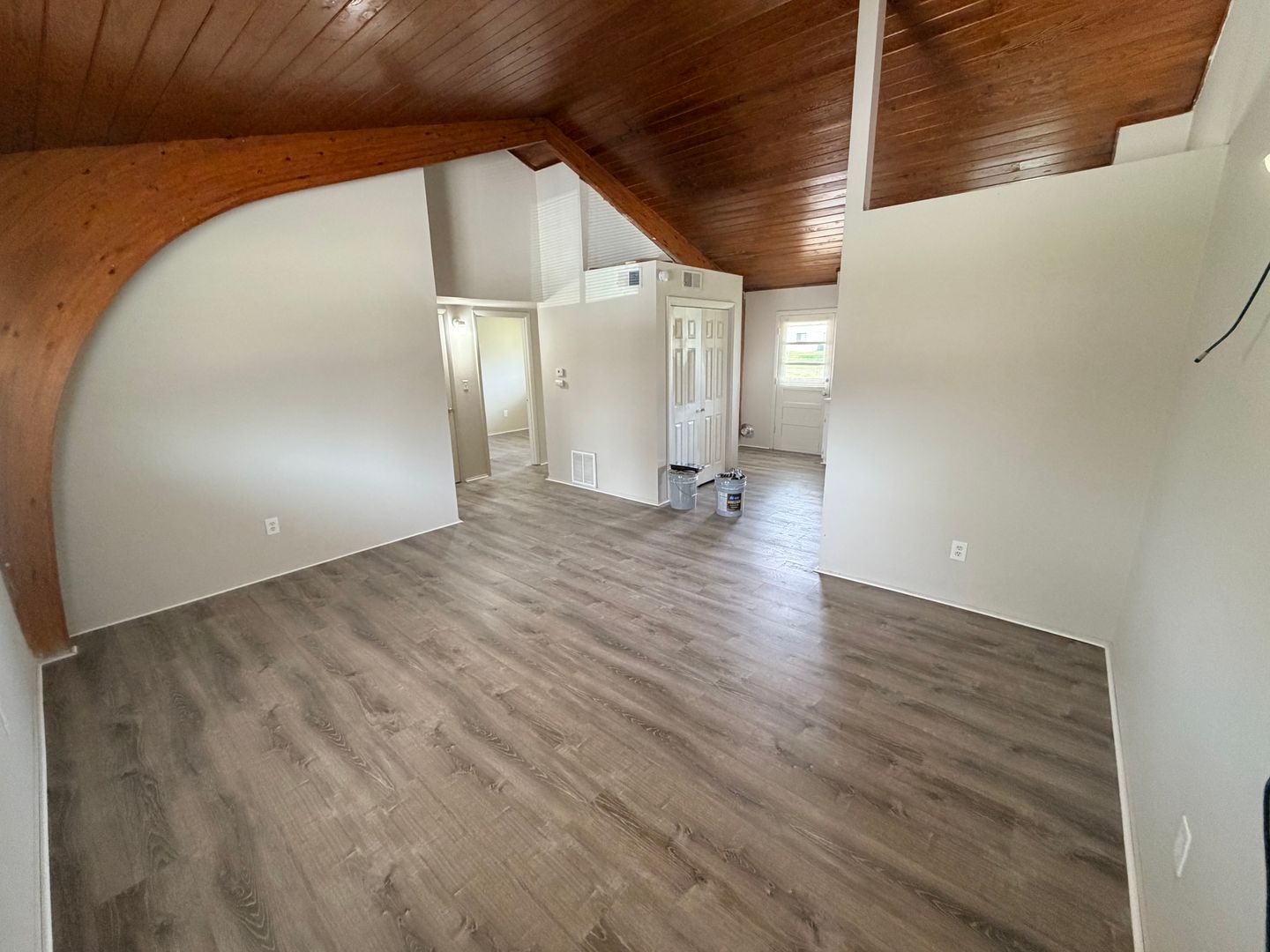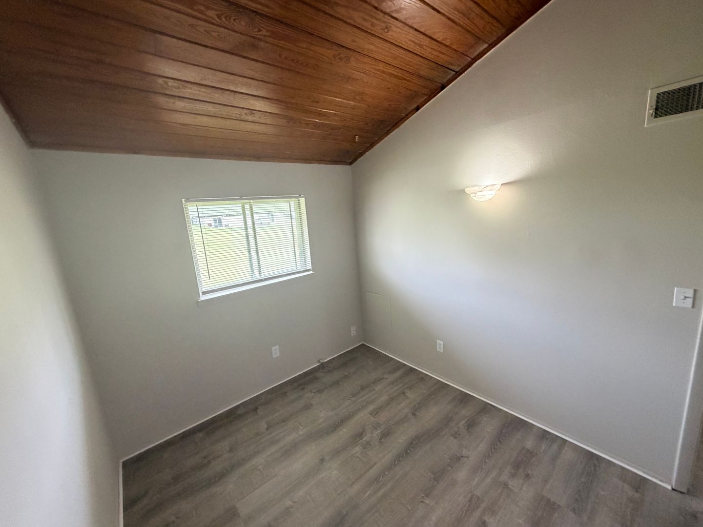 Inside, you’ll find a spacious living area highlighted by beautiful vaulted wood ceilings that add warmth and character to the space. Durable wood like flooring flows throughout the apartment, providing a modern look with easy maintenance. The kitchen offers generous counter space, perfect for cooking and entertaining.