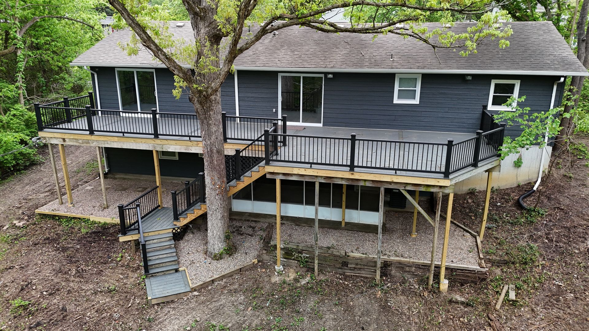 This spacious 5-bedroom, 3-bathroom Southside home offers comfort, functionality, and privacy across two levels. Featuring luxury vinyl plank flooring throughout, the home includes two generous living rooms, a fully equipped kitchen with rich wood cabinetry and a convenient center island, and plenty of additional storage space. Enjoy outdoor living with both a covered patio and back deck, perfect for relaxing or entertaining. The large, fully wooded backyard backs up to a peaceful creek, providing exceptional privacy and a tranquil natural setting.