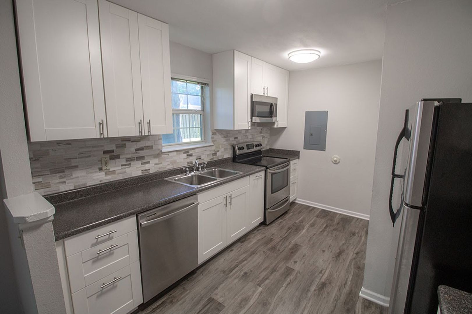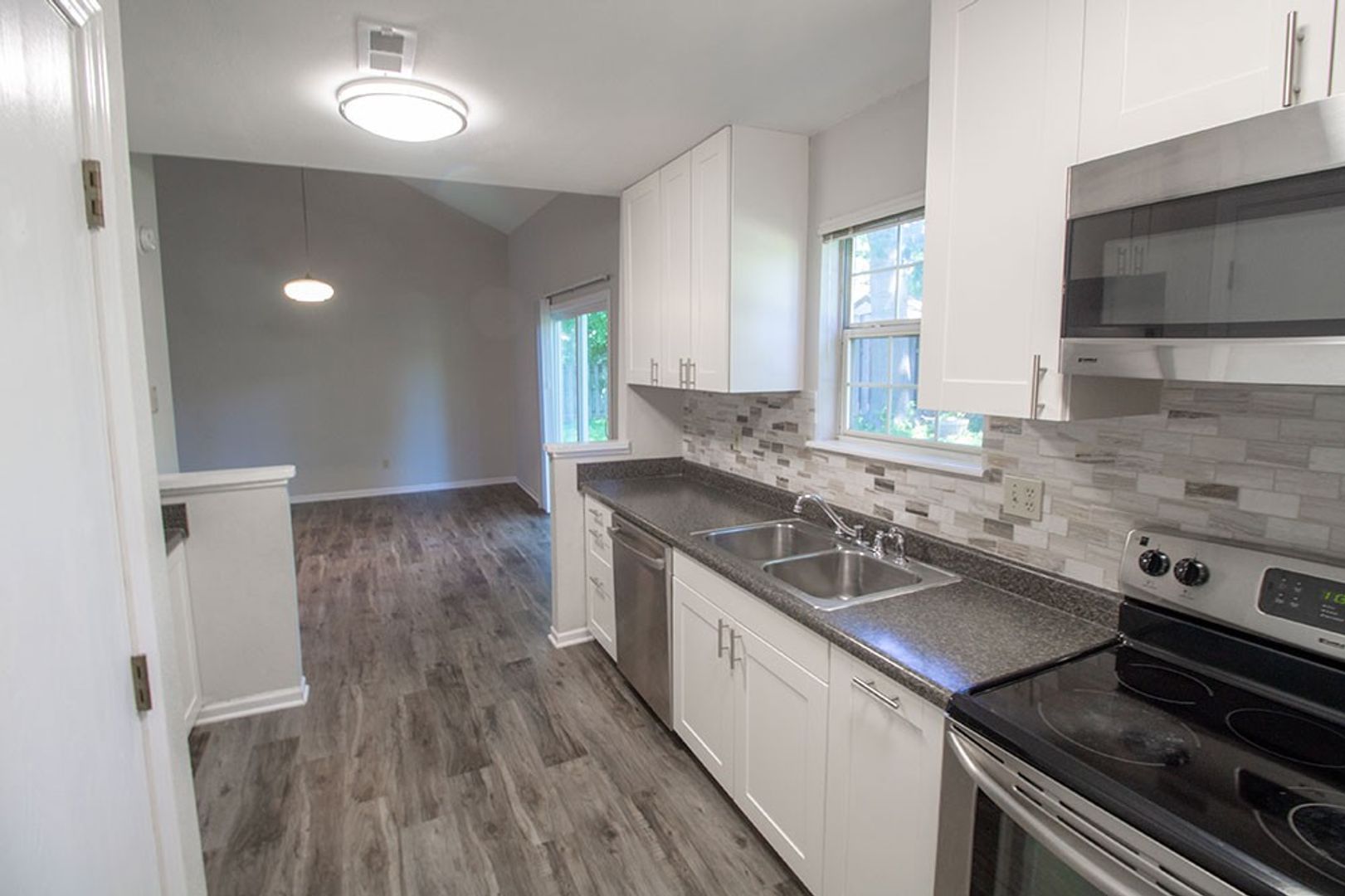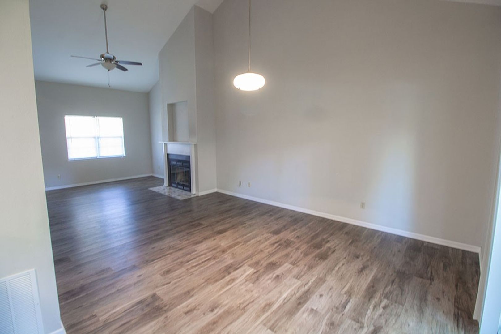 Come home to this updated three bedroom, two full bath duplex. On the main level you will find wood style laminate flooring as well as the master suite with a private bathroom and washer/dryer hookups just off the kitchen. Upstairs offers the other two bedrooms and one more full bath. Unit also offers a decorative fireplace in the living room and a one car garage. Call for more information and schedule a showing today! $40 application fee per adult, schedule a showing before applying online. Will not hold unit vacant for any approved applicant past a reasonable amount of time beyond availability date.