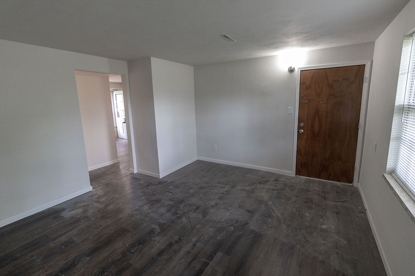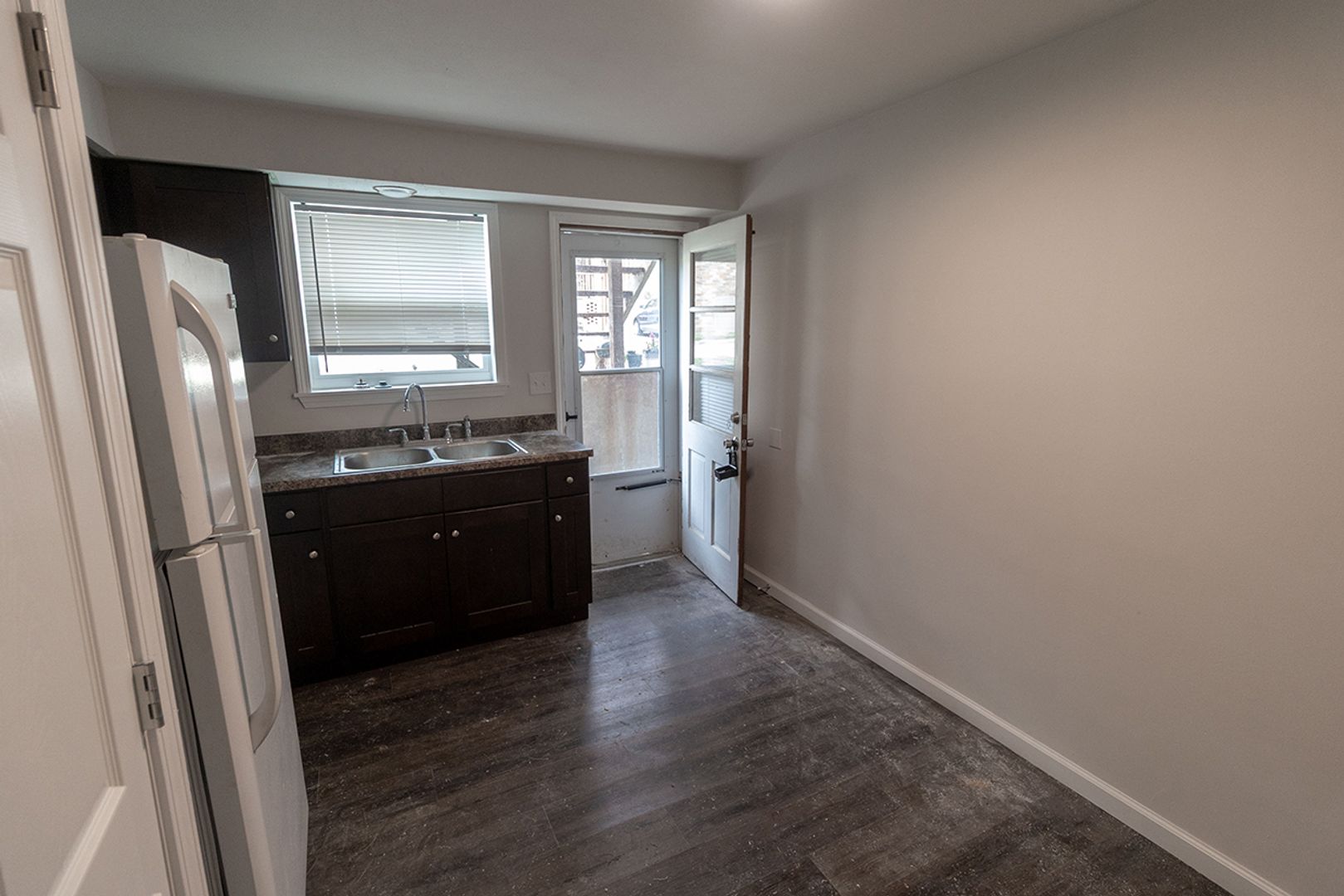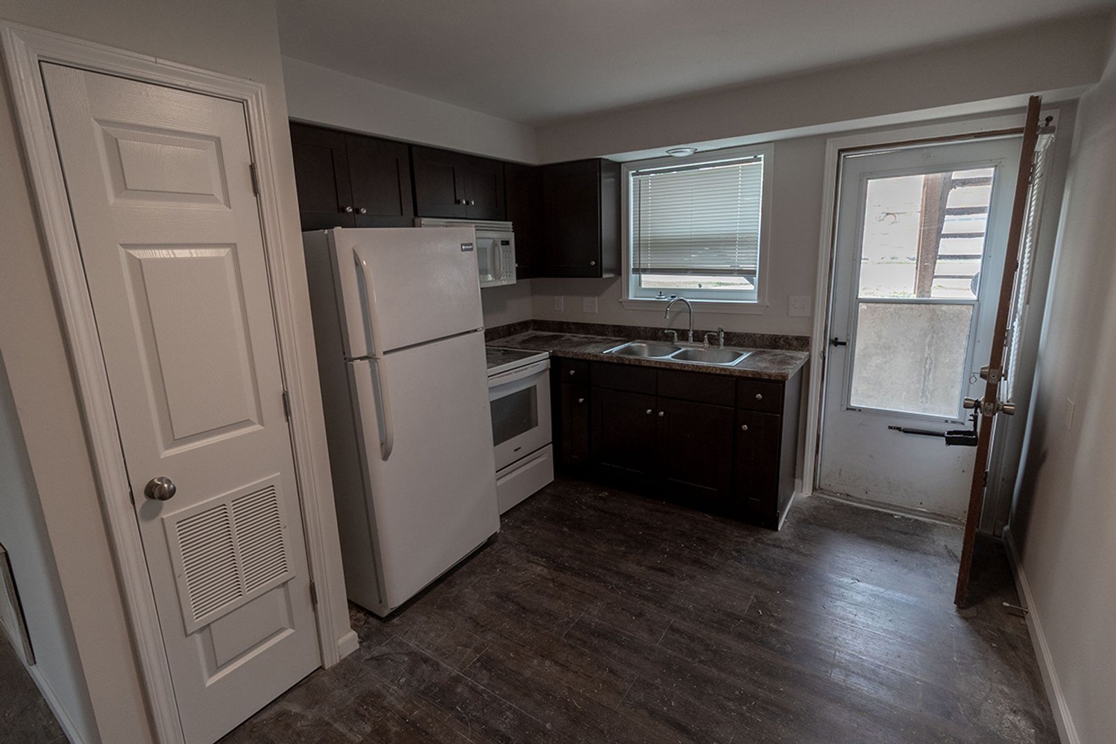 Main Level unit. Large carpet living room and tile floor in the bathroom. The rest of the unit has wood laminate flooring. Large eat in kitchen has access to back deck that walks down to parking area. Call for more information and schedule a showing today! $40 application fee per adult, schedule a showing before applying online. Will not hold unit vacant for any approved applicant past a reasonable amount of time beyond availability date.
