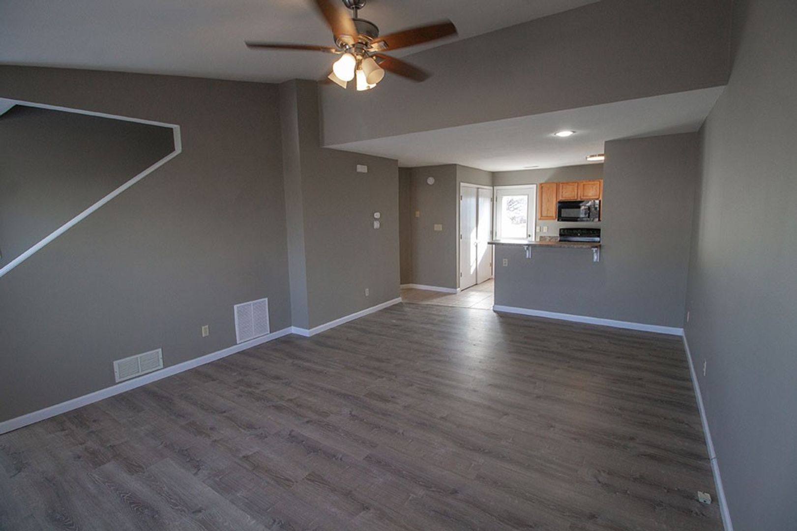 Upstairs you will find two additional bedrooms and a full bathroom. Luxury vinyl plank flooring runs throughout the entire unit, adding both style and durability. A one car garage and lawn mowing are included for added convenience.